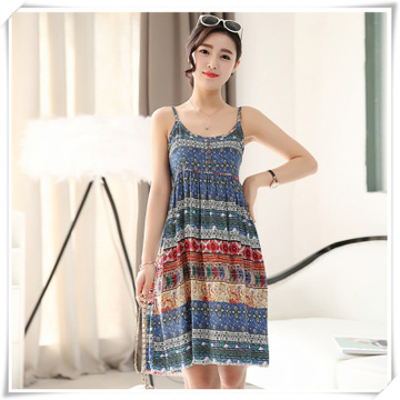 2016夏季新款小香風(fēng)公主無(wú)袖印花大碼蓬蓬背心裙夏天連衣裙女式潮 /