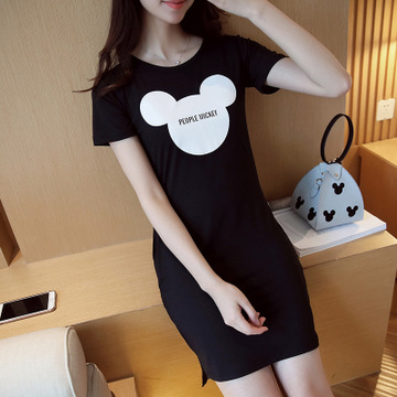 實拍2016夏裝米奇印花t恤大碼寬松女裝中長款韓版連衣裙夏潮 /