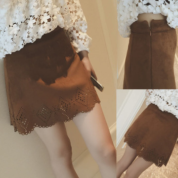 淘寶網(wǎng)店代賣 2016夏裝新款韓范鏤空半身裙純色麂皮絨女裝短裙 /