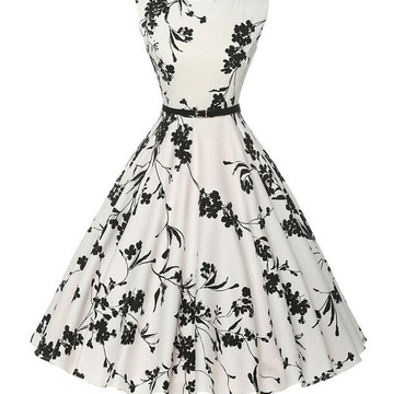 2016 歐美無袖復(fù)古連衣裙簡約印花大擺裙皮帶 /