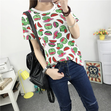 2016夏季新款女裝清爽風西瓜印花寬松顯瘦百搭圓領短袖T恤 /