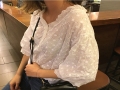 韓國 白色微透視v領燈籠五分袖襯衣 女裝批發混批代理代發C496 /