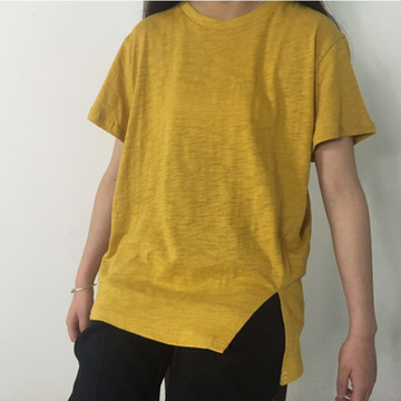 韓國 簡約百搭純色小開叉竹節棉短袖T恤 廣州十三行女裝批發T498 /