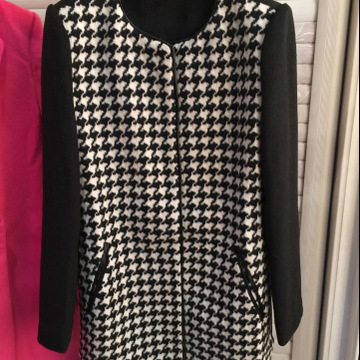 呆呆家2016新款鳥家圓領拼接拉鏈千鳥格毛呢大衣超值特價 /