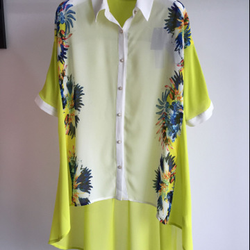 呆呆家2016鳥家原單長后擺短袖印花雪紡襯衫面料柔軟透氣 /