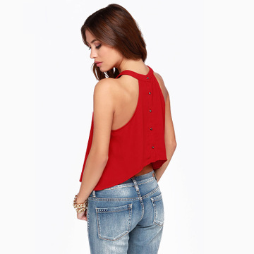 2016亞馬遜ebay熱賣 高端無袖背心后背門襟鉚釘女士外貿雪紡衫 /