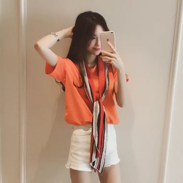 2016春夏裝新款休閑簡約純色寬松T恤女(送絲巾) /