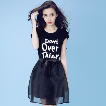 Angelababy明星同款 2016夏裝新品 兩件套修身無袖連衣裙女 /