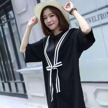 2016夏裝新款韓版學院風修身時尚百搭中長款中袖T恤女連衣裙潮 /