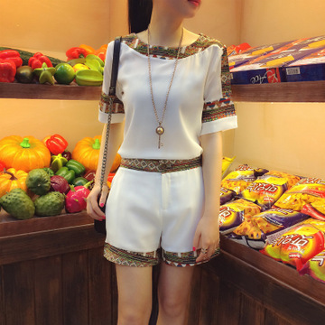 勞麗詩女裝2016韓版夏季新款潮流女裝修身短袖雪紡上衣+短褲時尚兩件套 /