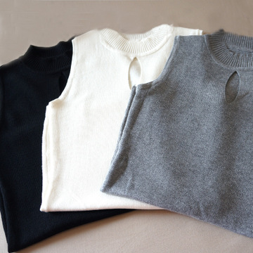 韓版無袖針織衫背心純色圓領領毛衣打底衫女緊身t恤無袖上衣批發(fā) /