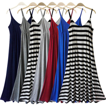 2016春夏新款莫代爾吊帶連衣裙女大碼a字裙條紋大擺波西米亞長(zhǎng)裙 /