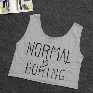 2015歐美夏款新款短款運(yùn)動休閑圓領(lǐng)無袖露臍字母印花女士T恤 /