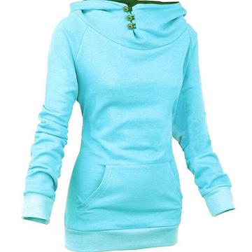速賣通春季女式歐美高領(lǐng)連帽紐扣衛(wèi)衣 現(xiàn)貨直銷批發(fā) /