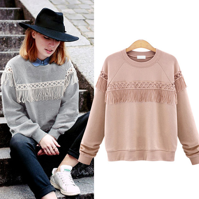 歐美外貿大碼女裝2015秋冬流蘇顯瘦時尚衛衣胖妹妹MM衛衣批發 /