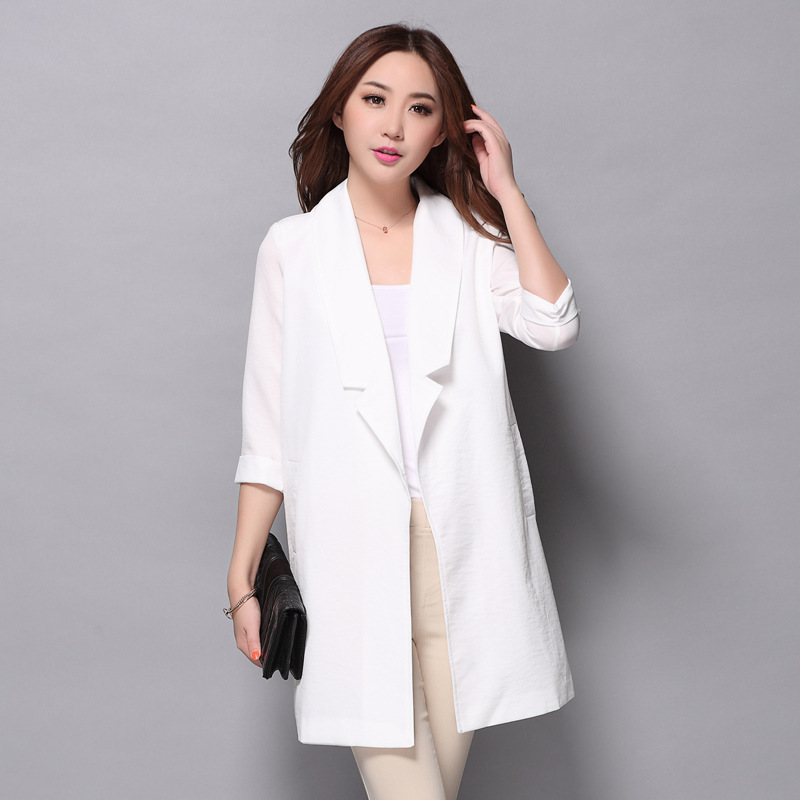 歐洲站七分袖秋季新款歐美小西裝時尚百搭女式修身中長款風衣 /
