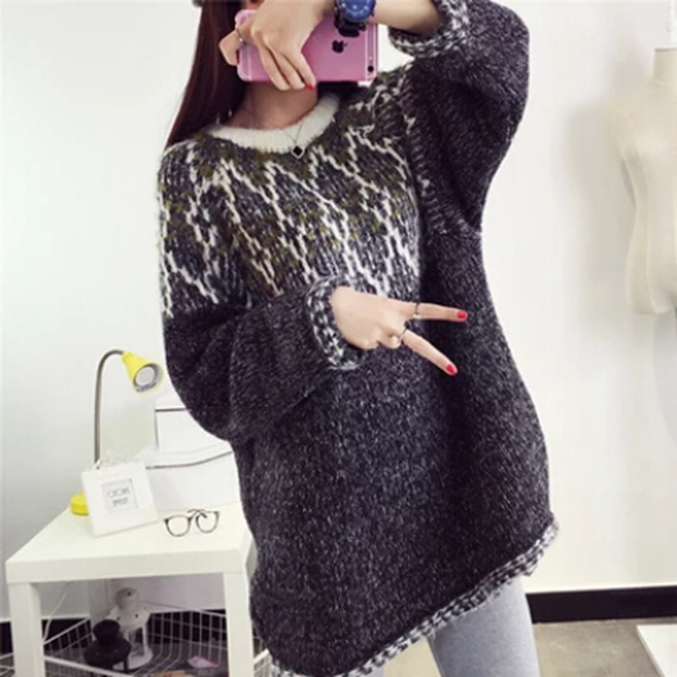 秋季新款女裝韓版寬松中長款提花加厚套頭毛衣女羊毛衫外套 /