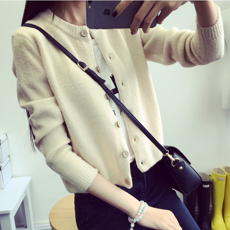 2015秋季新款韓版針織衫純色毛線長袖毛衣短款開衫外套女 /