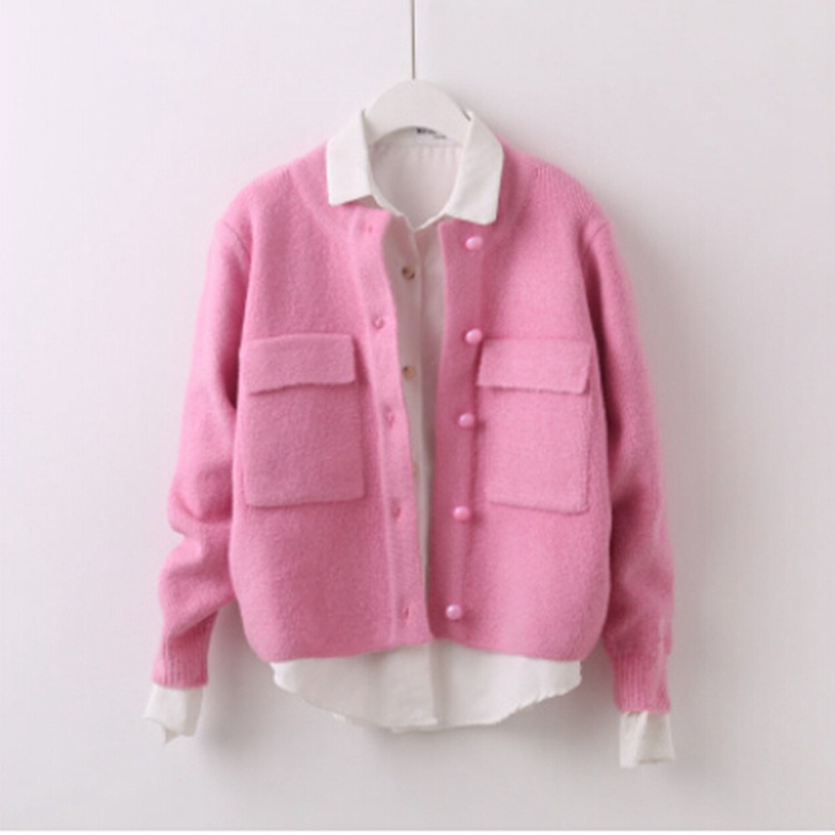 韓國東大門秋冬新款加厚口袋寬松毛衣女式針織開衫短款毛衣外套女 /