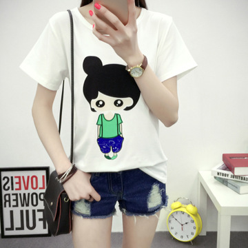 2016韓版女裝圓領學生可愛胖MM卡通印花短袖T恤女修身打底上衣潮 /