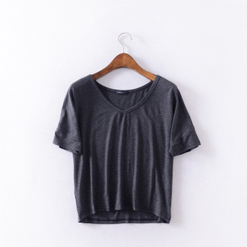 夏季新款修身顯瘦V領短袖T恤韓版簡約百搭打底衫批發 /