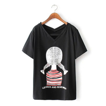 2016春夏新款胖mm加大加肥大碼女裝韓版寬松款V領女孩印花純棉T恤 /
