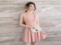 2016歐洲站女裝夏款韓版純色優雅氣質皺褶修身顯瘦連衣裙無袖裙 /