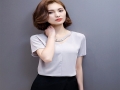 實拍A夏裝V領短袖雪紡衫韓版百搭純色t恤女上衣修身小衫大碼 /