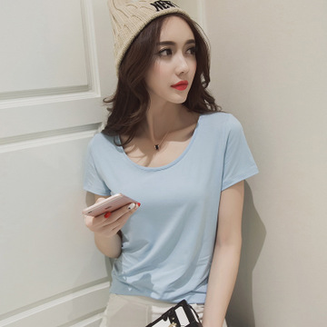 實拍 純色短袖t恤女 韓版夏裝修身百搭休閑半袖體恤打底衫 /