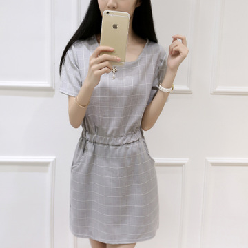 8989韓版連衣裙女夏 歐洲站夏裙圓領時尚修身裙 /