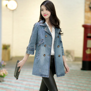 牛仔外套女2016春裝新款韓版修身顯瘦西裝領七分袖風衣上衣女裝 /
