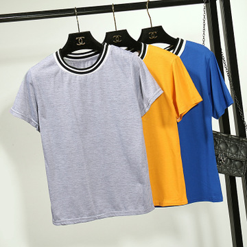 實拍 1304#新款基礎必備百搭簡約圓領條紋領套頭短袖上衣T恤女夏 /