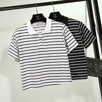實拍 1303#新款韓版女裝polo翻領簡約條紋寬松短款學生T恤上衣女 /