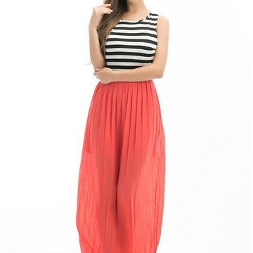 簡介: 風格歐美 圖案條紋 工藝拼貼/拼接 產地廣州 庫存類型整單 款式基本款 組合形式單件 裙長長裙 裙型百褶裙 領型圓領 袖型常規袖 品牌憶涵 袖長無袖 腰型高腰 衣門襟套頭 流行元素拼接,印花 上市年份/季節2016夏季 面料名稱雪紡 尺碼均碼
