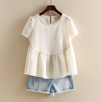 熙蘭雅~專柜正品折扣 2016新款歐根紗女式娃娃衫寬松短袖上衣T恤 /