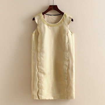 熙蘭雅~專柜折扣正品原單尾貨2016夏新款金絲女式寬松無袖連衣裙 /