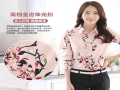 碎花襯衫女長袖粉色OL修身顯瘦大碼春職業打底衫百搭印花雪紡衫 /