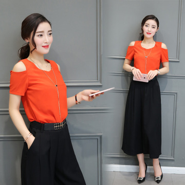 一件代發(fā)2016夏裝新款時尚套裝名媛修身襯衫搭配七分闊腿 /