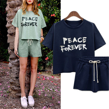 2016新款歐美風寬松休閑運動衛衣套裝女短袖T恤+短褲跑步兩件套 /