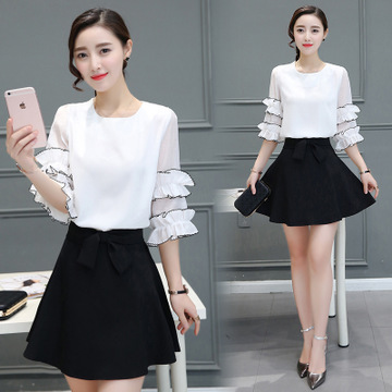 雪紡套裝女裝包裙2016夏裝韓版潮流半身裙小香風兩件套裝裙夏 /