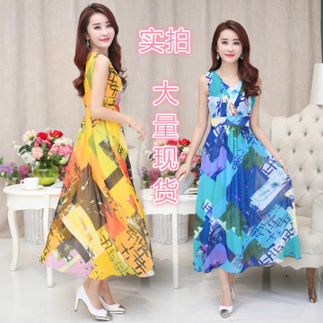 實拍公主2016夏國度女裝新V領短袖大擺桑蠶絲長裙真絲連衣裙 /