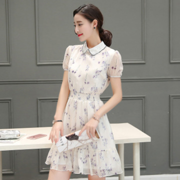2016年夏季新款珍珠娃娃領(lǐng)田園清新松緊收腰修身顯瘦小碎花連衣裙 /