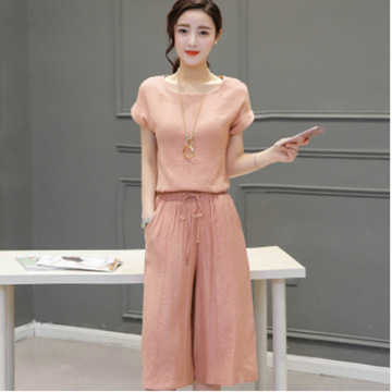 2016年夏季新款韓版棉麻上衣時(shí)尚休閑套裝闊腿兩件套【送項(xiàng)鏈】 /