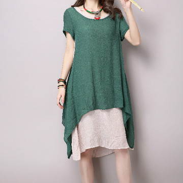 新款女裝2016棉麻兩件套裝連衣裙子長款亞麻長裙套裙夏 /