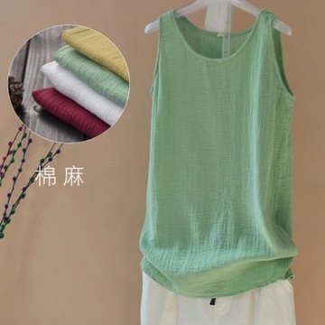 新款 簡約百搭棉麻文藝中長打底衫小背心 寬松打底吊帶衫 /