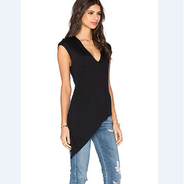 2016春季新款V領(lǐng)短袖熱賣(mài)不規(guī)則下擺中長(zhǎng)T恤 /