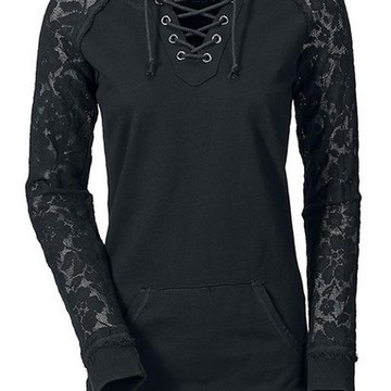 2015歐美速賣通新款蕾絲拼接抽繩衛衣 /