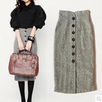 大量現貨2015秋冬半身裙中長裙花毛呢子復古高腰修身包臀裙 /