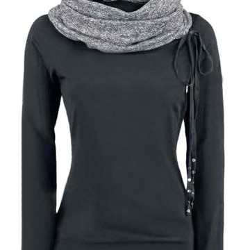 2015歐美速賣通新款灰色拼接堆堆領加厚衛衣 /