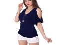 2016 歐美熱賣性感V領露肩褶皺T恤 /